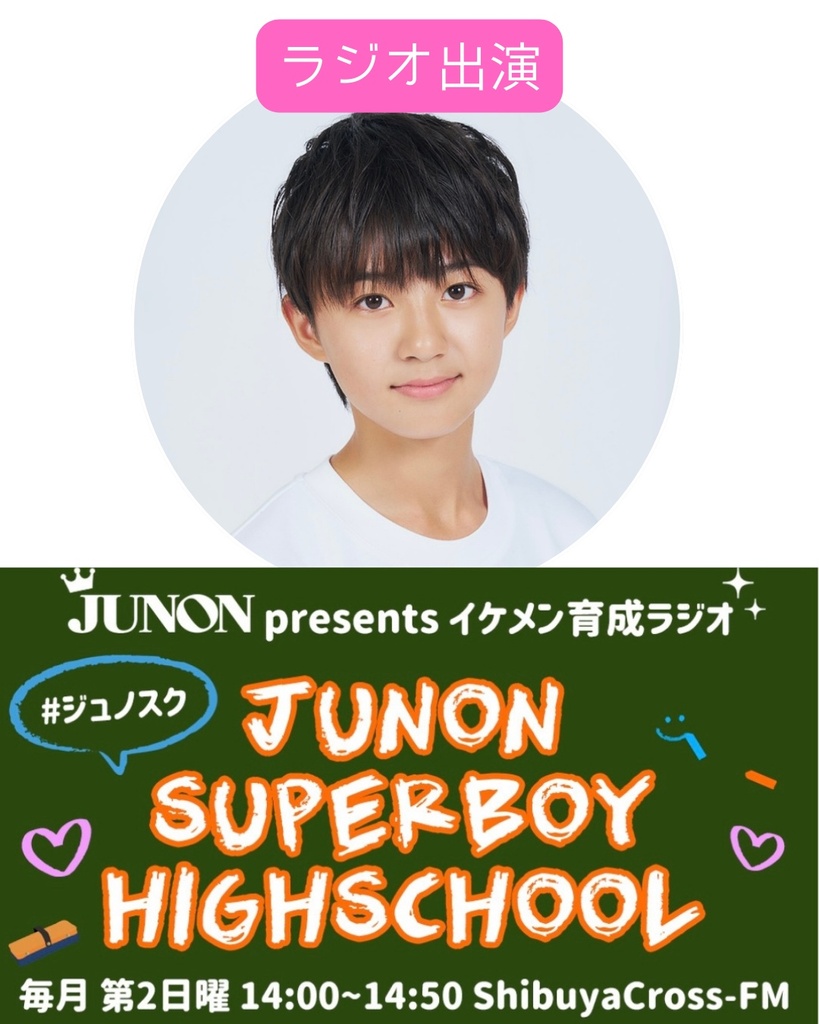 静岡県在住の中学1年生、『将来、たくさんの人を笑顔にしたい』と思いジュノンスパーボーイに応募しました!笑顔とハキハキした声を褒められることが多いです!